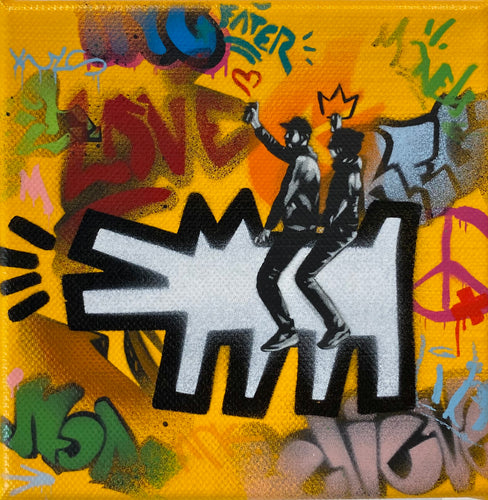 Born in 1979 and growing up in the countryside in Germany, Kunstrasen is a stencil artist who derives his name from the German term for “Astroturf”. Also, he made a wordplay with “kunst”=art and “rasen”=speeding in German. After the school, he moved to Canada and, after, in the UK for the university. Studies and work in design until he made the hobby of stencilism in a profession. Now he is back in Germany and making his amazing and unic art. The purpose behind Kunstaren’s art is continuing research for authenticity, with a costant critical look on contemporary society and economic system. His style, with mainstream cultural references, play with cutting satire and the peculiar techniques.