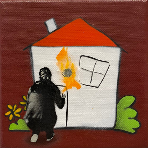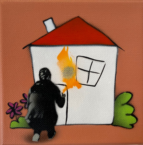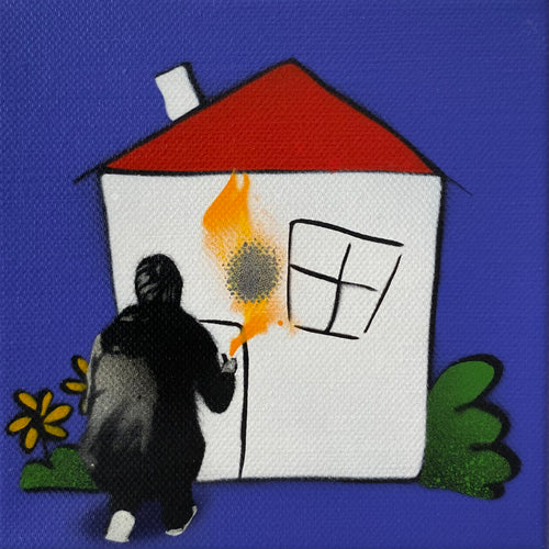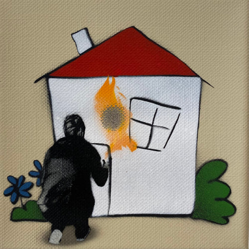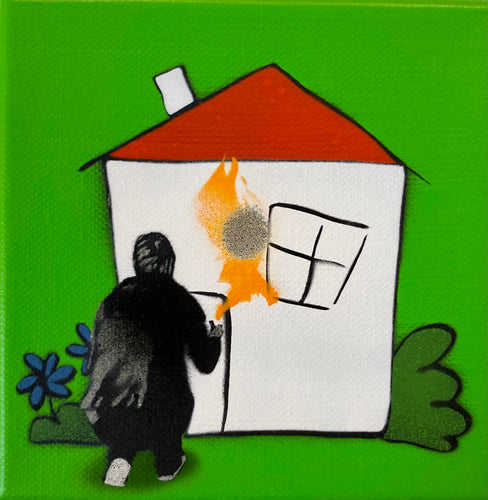 Born in 1979 and growing up in the countryside in Germany, Kunstrasen is a stencil artist who derives his name from the German term for “Astroturf”. Also, he made a wordplay with “kunst”=art and “rasen”=speeding in German. After the school, he moved to Canada and, after, in the UK for the university. Studies and work in design until he made the hobby of stencilism in a profession. Now he is back in Germany and making his amazing and unic art. The purpose behind Kunstaren’s art is continuing research for authenticity, with a costant critical look on contemporary society and economic system. His style, with mainstream cultural references, play with cutting satire and the peculiar techniques.